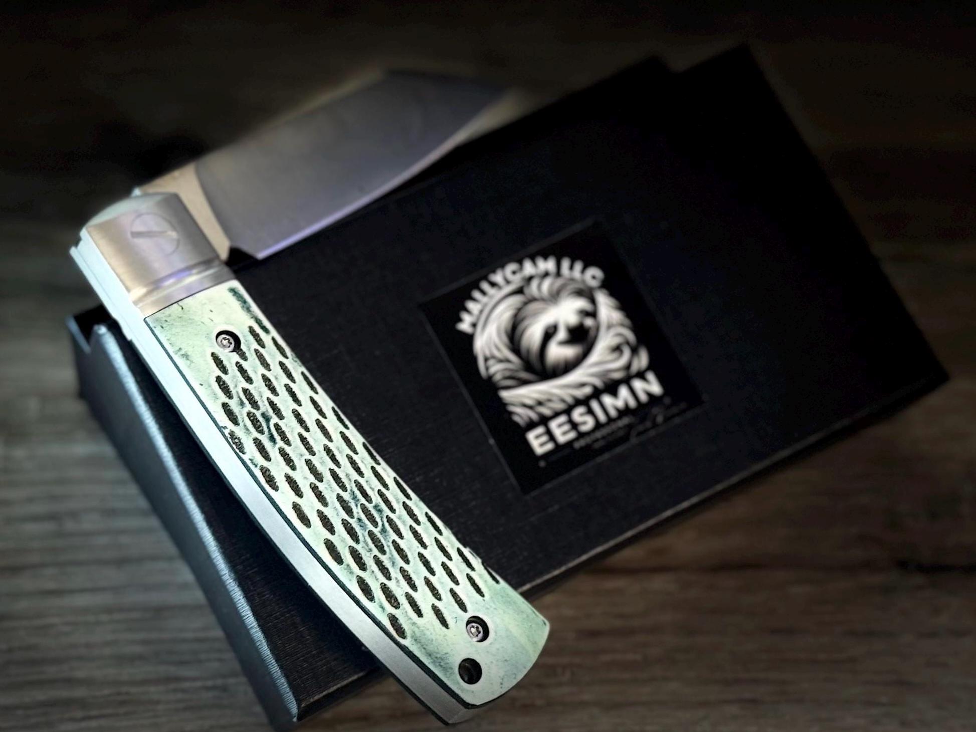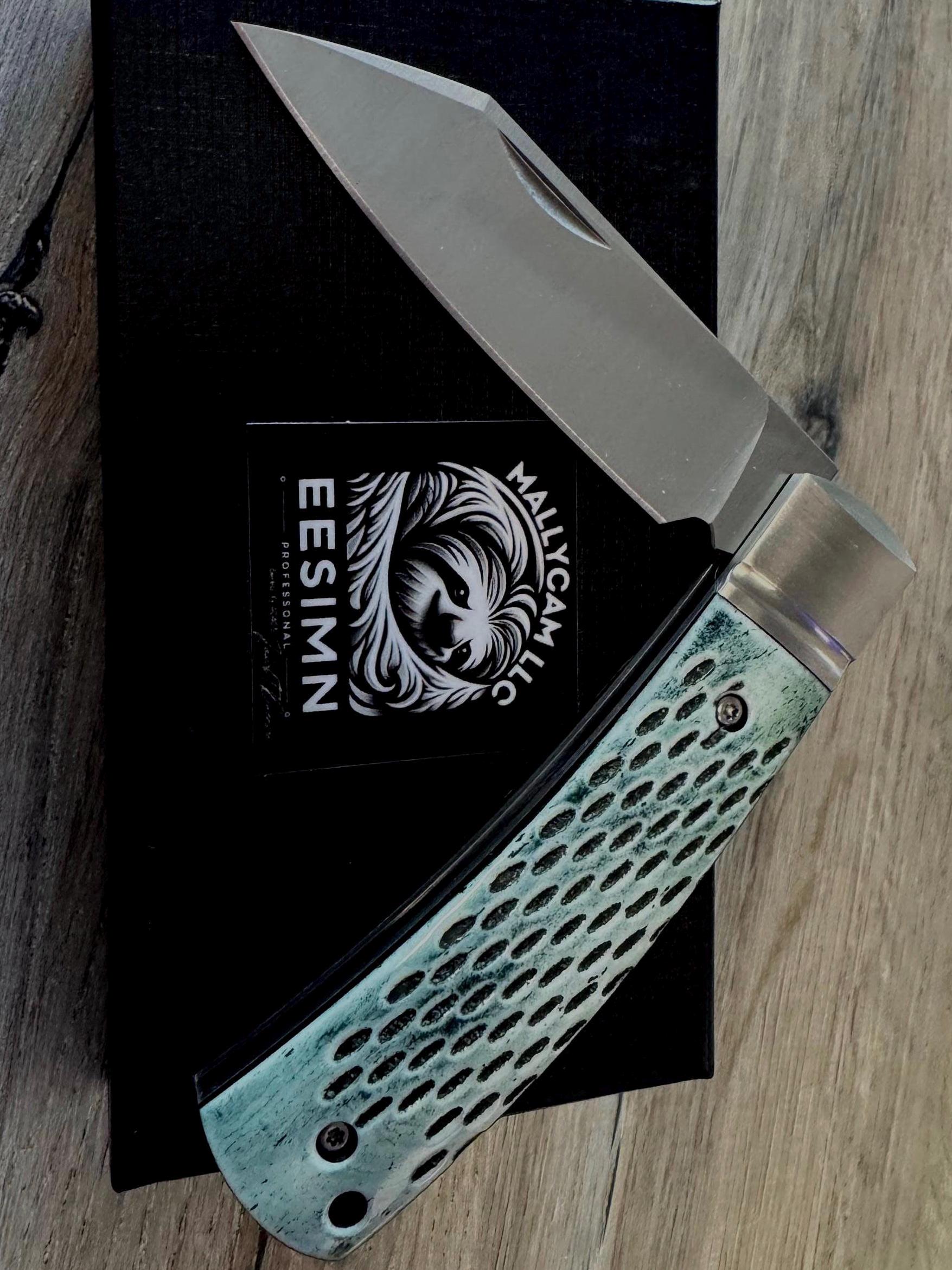 Experience one of the highest levels of craftsmanship with our jigbone D2 Steel Folding Pocket Knife, a folding knife that seamlessly combines elegance and functionality. This premium-quality knife is handcrafted and features a meticulously crafted D2 steel blade, known for its exceptional durability & sharpness. The knives aesthetic appeal ensures superior cutting performance, making it a must-have for outdoor enthusiasts, hunters, and collectors alike.