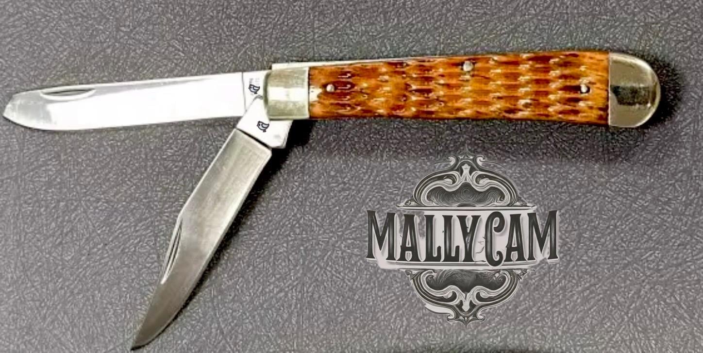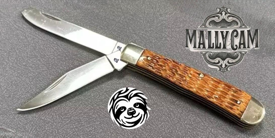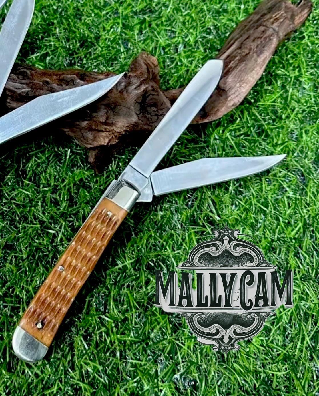 The knife’s handles are made from ox jigged bone, offering an eye-catching, textured finish that’s both rugged and aesthetically pleasing. The brass pins and liners, along with the nickel silver bolsters, provide additional durability while enhancing the knife’s overall appeal. The nickel adds a touch of elegance and serves as a symbol of the quality craftsmanship MallyCam is known for. It’s a knife that combines beauty with practicality.