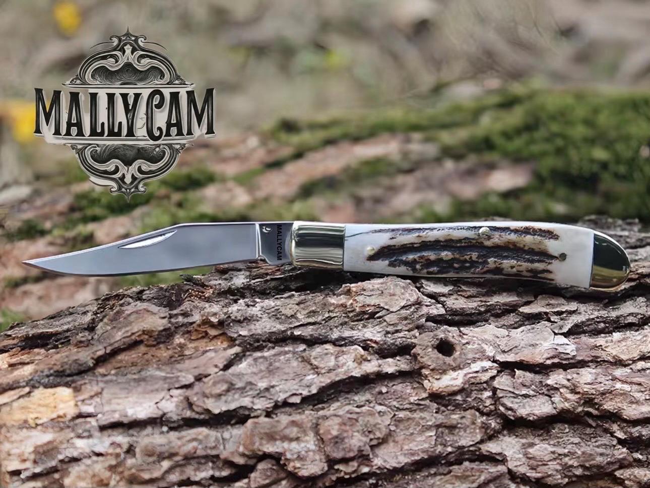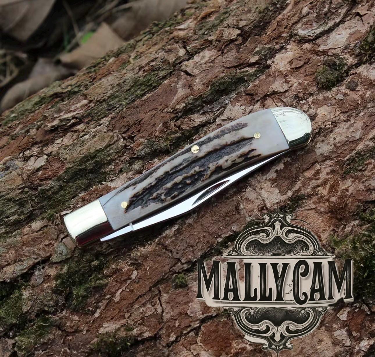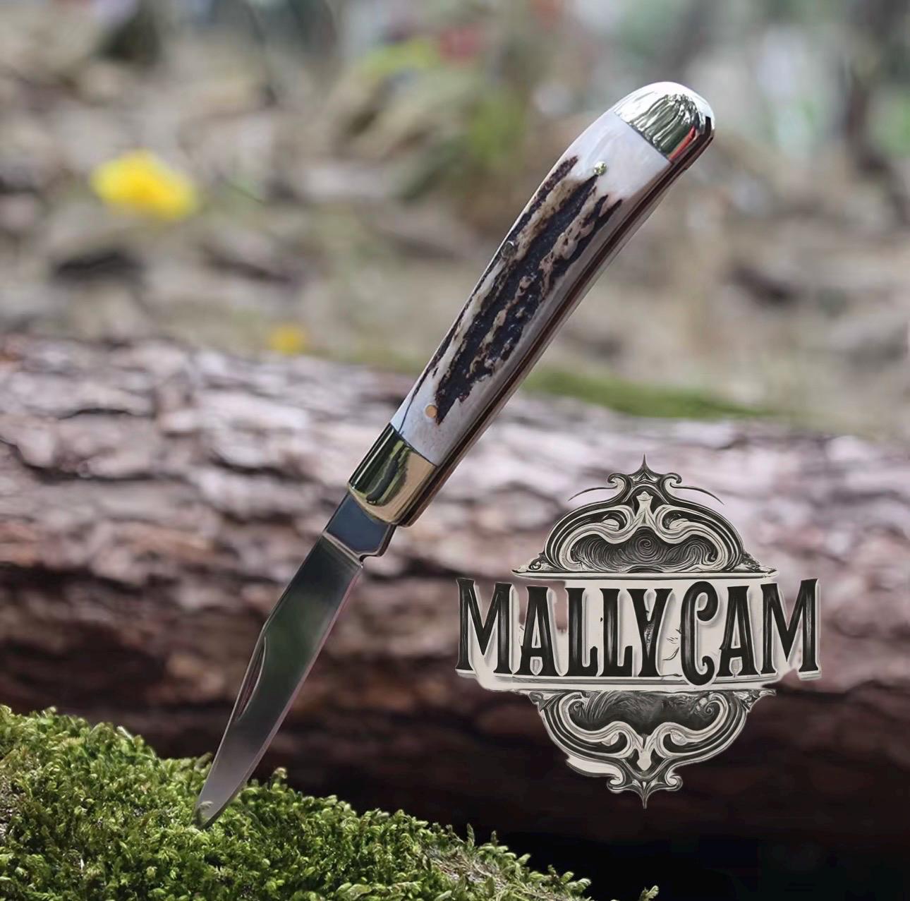 Handmade forged Jakob’s slip joint Stag is a standard jack pattern inspired by a very old I-X-L pattern. This one-bladed slip joint features a 3″ 420ss drop point blade with heavy swedging, a half stop, and a high polished finish. The covers are Genuine white tail Deer Stag harvested out of Richmond Ky, and featured high polished steel bolsters, steel liners, and nickel silver pins. This edition does not bear a shield. It’s 3″ closed, 6″ overall, and weighs about 3.1oz
